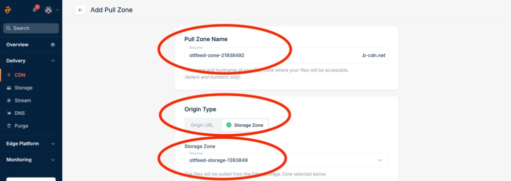 Step-by-Step Instructions to Set Up Bunny Storage Zone for OTTfeed